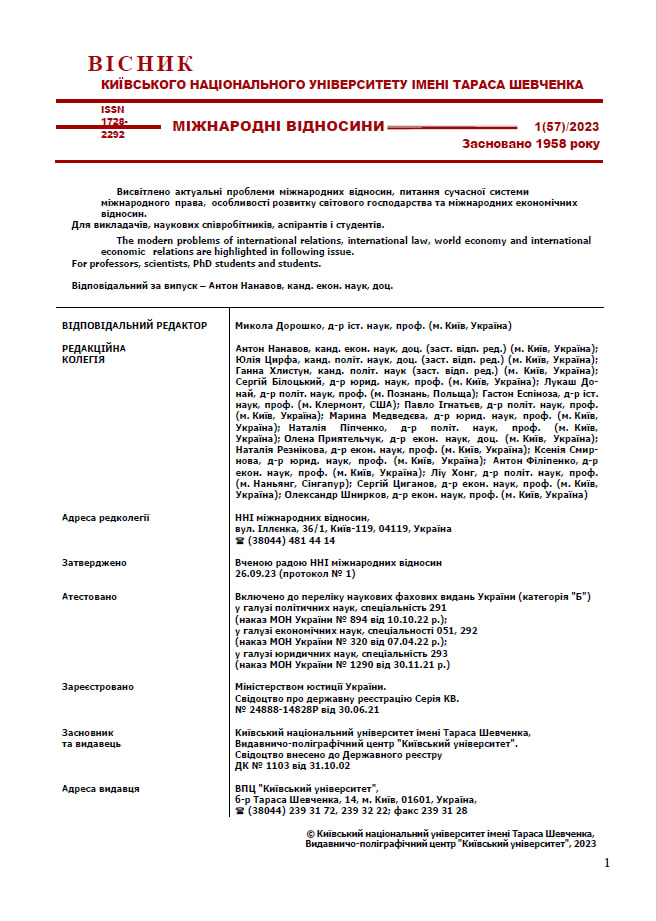 Том 57 № 1 (2023)Представлено дослідження актуальних проблем міжнародних відносин, питання сучасної системи міжнародного права і особливості розвитку світового господарства та міжнародних економічних відносин.