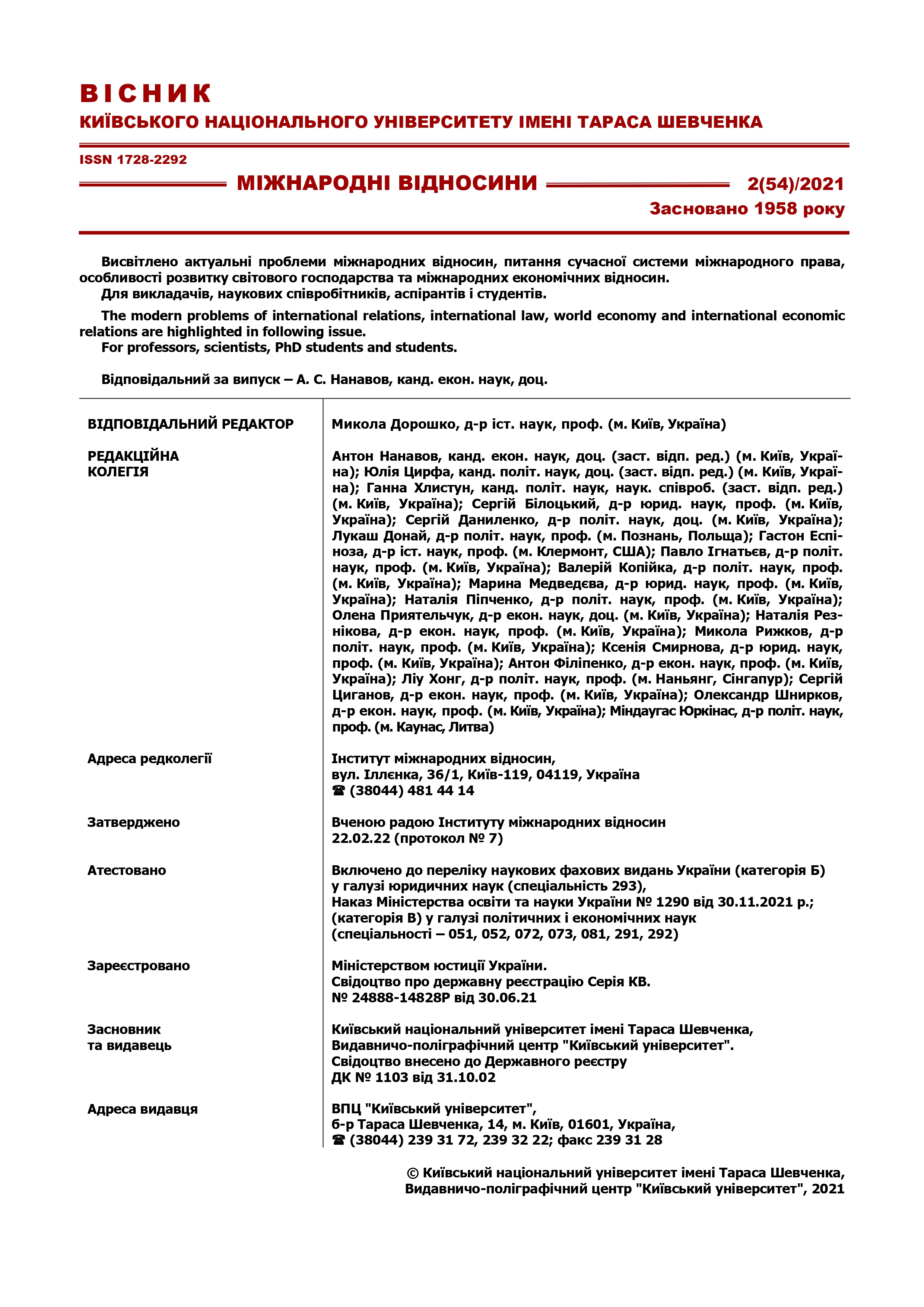 Том 61 № 2 (2025)Представлено дослідження актуальних проблем міжнародних відносин, питання сучасної системи міжнародного права і особливості розвитку світового господарства та міжнародних економічних відносин.