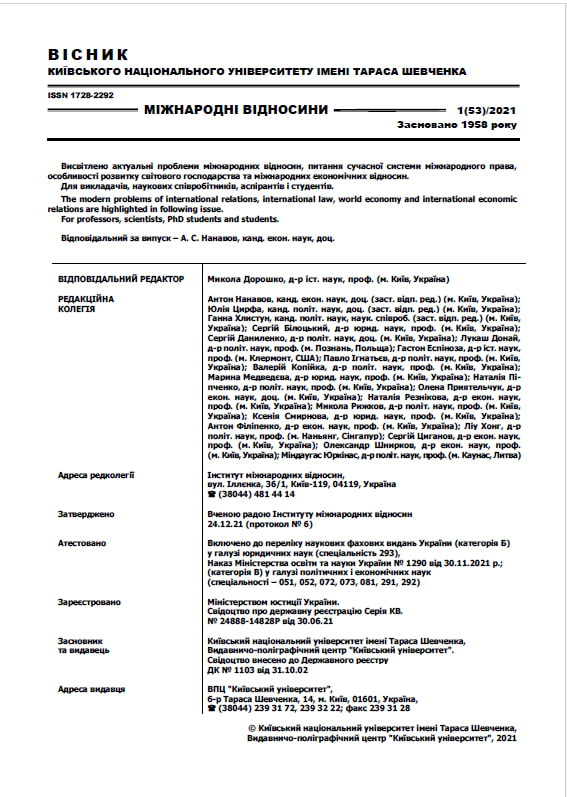 Том 53 № 1 (2021)Представлено дослідження актуальних проблем міжнародних відносин, питання сучасної системи міжнародного права і особливості розвитку світового господарства та міжнародних економічних відносин.